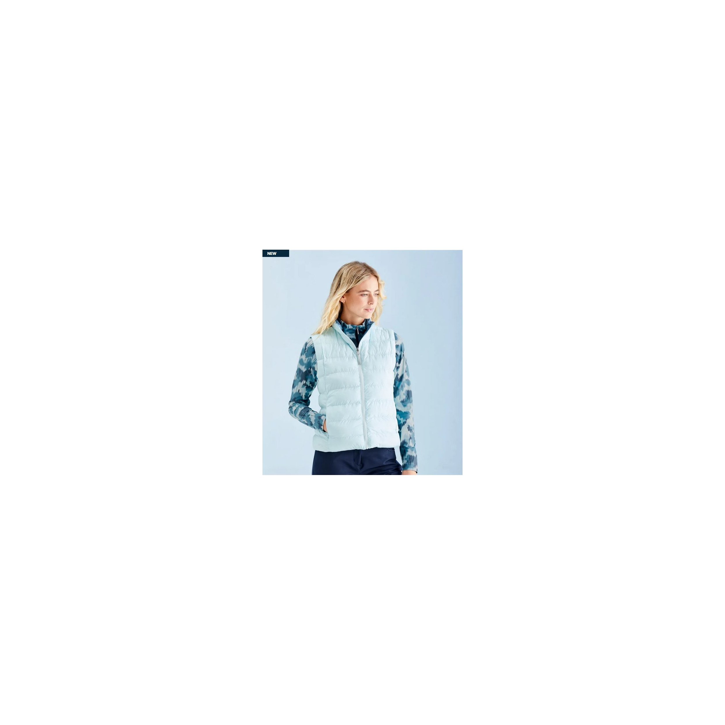 - Chaleco suave, ligero y cálido, diseñado con Pluma.
